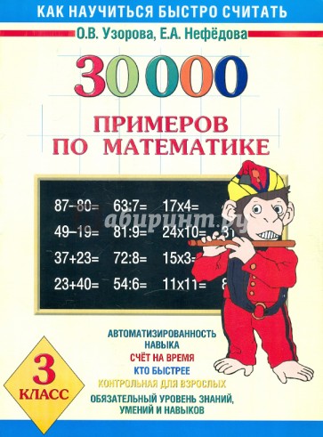 Пособие содержит 30 000 математических примеров по темам, изучаемым в 3 классе, в том числе и примеры на деление с остатком. Оригинальное построение материала позволяет обеспечить более глубокое его усвоение.