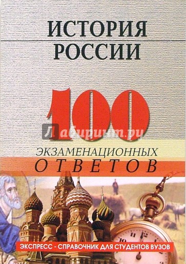 Издание содержит ответы на 100 вопросов, наиболее распространенных на экзаменах по отечественной истории в вузах. Здесь же приводится хронологическая таблица, схемы органов государственного управления на всех этапах существования Российского государства от Киевской Руси до наших дней и династические таблицы Рюриковичей и Романовых.