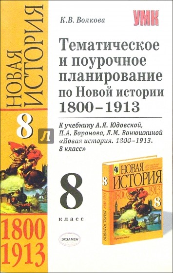 Пособие содержит подробное планирование уроков Новой истории к учебнику А.Я. Юдовской, П.А. Баранова, Л.М. Ванюшкиной "Новая история. 1800-1913. 8 класс", рекомендованному Министерством образования и науки РФ и включенному в Федеральный комплект учебников.