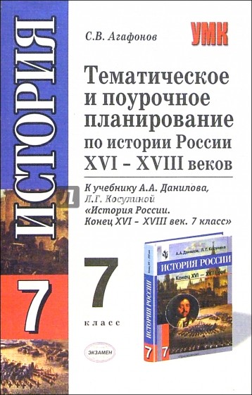 Пособие содержит подробное планирование уроков истории России в 7 классе к учебнику А.А. Данилова, Л.Г. Косулиной "История России: Конец XVI-XVIII век", рекомендованному Министерством образования и науки РФ и включенному в Федеральный перечень учебников.