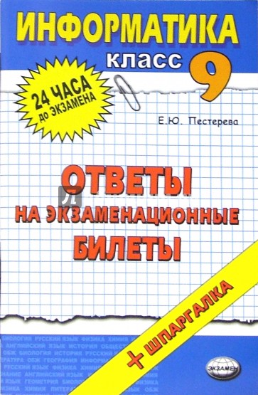 В данном пособии приводятся ответы на все вопросы экзаменационных билетов по информатике, предлагаемых Министерством образования РФ для проведения устной итоговой аттестации выпускников 9-х классов общеобразовательных школ. В ответах на практические вопросы рассмотрены примеры решения типовых задач и примеры выполнения типовых заданий.