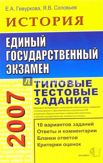 Типовые тестовые задания по истории содержат 10 вариантов комплектов заданий, составленных с учетом всех особенностей и требований Единого государственного экзамена и соответствующих структуре экзаменационной работы, а также ответы к каждому заданию.