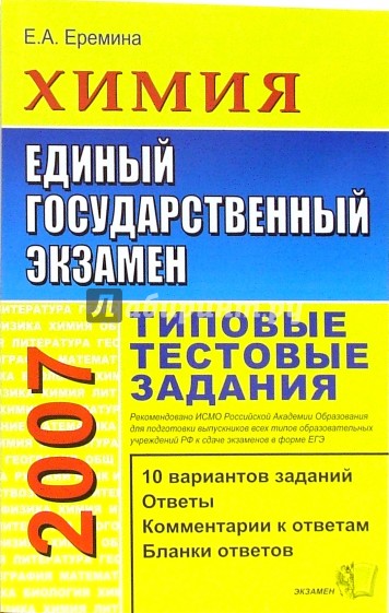 Типовые тестовые задания по химии содержат 10 вариантов комплектов заданий, составленных с учетом всех особенностей и требований Единого государственного экзамена, а также ответы к каждому заданию. Автор заданий - преподаватель Московского государственного университета, имеющий большой опыт разработки тестов и методических материалов для подготовки к выполнению тестовых заданий. Книга предназначена для подготовки к Единому государственному экзамену. Она может быть также использована для проверки знаний и подготовки в вуз.