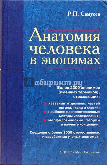 В настоящем справочнике представлено более 2300 эпонимов, используемых в отечественной и зарубежной анатомии. Обобщены эпонимические термины, отражающие названия отдельных частей органа, ткани и клетки; наиболее распространенные методы исследования; морфологические теории и научные концепции. В книге систематизированы сведения об отечественных и зарубежных ученых-анатомах (более 1000).