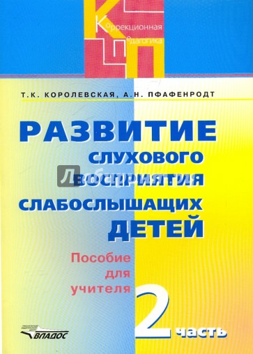 Часть 2 пособия содержит (иллюстративный и речевой) материал для индивидуальных занятий учителя со слабослышащими учащимися и состоит из четырех комплектов: 1. Примерный речевой и иллюстративный материал учителю для индивидуальных занятий по развитию слухового восприятия учащихся подготовительного класса (в комплекте 31 лист). 2. Примерный речевой и иллюстративный материал учителю для индивидуальных занятий по развитию слухового восприятия учащихся 1 класса (в комплекте 78 листов). 3. Дополнительный речевой и иллюстративный материал учителю для индивидуальных занятий по развитию слухового восприятия учащихся 1-2 классов (в комплекте 20 листов). 4. Дополнительный иллюстративный материал учителю для работы с текстами-диалогами на индивидуальных занятиях по развитию слухового восприятия учащихся 1-2 классов школы II вида (в комплекте 5 листов). Пособие адресовано учителям специальных (коррекционных) школ II вида, педагогам дошкольных учреждений для детей с недостатками слуха; специалистам сурдологических и реабилитационных центров; родителям детей с недостатками слуха.