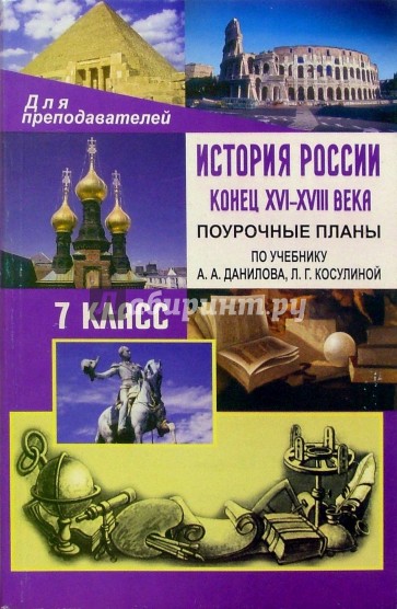 В пособии содержатся поурочные планы, составленные в соответствии с учебником: А.А. Данилов, Л. Г. Косулина. История России. Конец XVI-XVIII вв. 7 класс. М.: Просвещение, 2003.