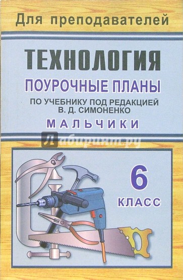 В пособии представлены коспекты уроков технологии по учебнику под ред. В.Д. Симоненко (вариант для мальчиков), (М.: Вентана-Граф, 2004), составленные в соответствии с программой образовательной области "Технология" для 6 класса общеобразовательной школы. Уроки содержат лабораторные и практические работы, позволяющие научить учащихся правильно пользоваться столярными с слесарными инструментами, обучить навыкам работы с древесиной и металлом, способам изготовления различных предметов, используемых в бытовой и досуговой сферах деятельности. В пособии представлен многочисленный иллюстративный материал (таблицы, схемы, рисунки, технологические карты и др.), позволяющий расширить содержание уроков наглядными средствами обучения.