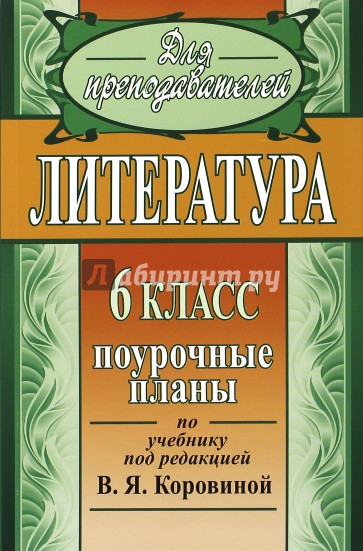В пособии представлены поурочные планы, составленные в соответствии с учебником: Литература. 6 класс: учеб. для общеобразоват. учреждений с прил. на электрон, носителе: в 2 ч. / В. П. Полухина [и др.]; под ред. В. Я. Коровиной. М.: Просвещение, 2011.