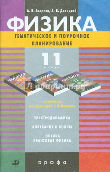 Пособие адресовано учителям. В нем приведено тематическое и поурочное планирование к учебникам под редакцией Г.Я.Мякишева «Электродинамика. 10—11 классы», «Колебания и волны. 11 класс», «Оптика. Квантовая физика. 11 класс», даны методические рекомендации к урокам, представлены варианты контрольных работ по данному курсу.