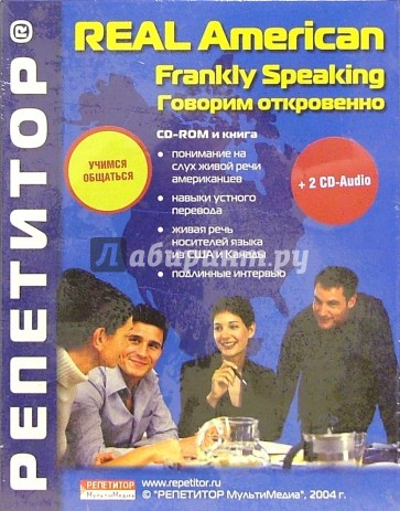 Real American - серия из трех интерактивных программ, обучающих разговорному английскому языку и основанных на подлинных интервью с носителями языка из США и Канады. Три редима (от "Intermediate" до "Advanced"). На диске полная версия одного из тез выпусков серии Real American (в отличие от лайт-версии полностью поддерживается тренинг устного перевода). В качестве бонуса на том же диске: PDF-версия книги Real American / Frankly Speaking и звуковые дорожки MP3 со всеми интервью выпуска.