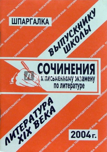 В сборник входят готовые образцы сочинений по произведениям русской литературы ХIХ века, включенные в перечень тем сочинений для подготовки к письменному экзамену по литературе за курс средней (полной) школы в 2003/2004 учебном году.