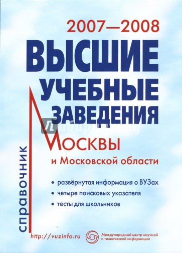 Справочник содержит сведения о 312 государственных и негосударственных вузах, имеющих лицензии на право образовательной деятельности в сфере высшего образования, учебных заведениях, специализирующихся на повышении квалификации и дополнительном образовании, а также об их филиалах, расположенных в Москве и Московской области. Для удобства пользования в справочник включены указатель направлений и специальностей, указатель расположения вузов относительно ближайших станций метро или населенных пунктов, алфавитный указатель наименований вузов и указатель вузов, изменявших свои названия.