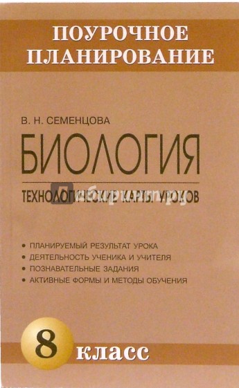 Предлагаемые технологические карты созданы по курсу Н.И. Сонина, М.Р. Сапина "Человек" для 8-го класса, но данное пособие может использоваться и при работе по другим программам.