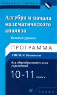 Алгебра и начала математического анализа. 10-11 кл. Базовый уровень: программа УМК для общеобразоват
