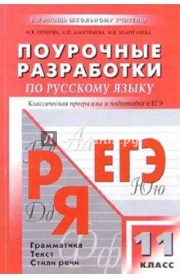Настоящее пособие содержит комплект поурочных планов по русскому языку, ориентированных на педагогов, работающих по классической системе, и комплект планов, ориентированных на подготовку к ЕГЭ. Может быть использовано для работы с любым современным учебником, а также автономно. Книга содержит развернутое планирование уроков, дополнено справочными и тестовыми материалами, информацией и вариантами тем и уроков для углубленного изучения русского языка в 11 классе. Авторы пособия - заслуженные учителя, практикующие педагоги.
