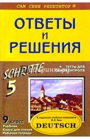 Подробный разбор заданий из учебника и рабочей тетради по немецкому языку "SCHRITTE. 5" для 9 класса авторского коллектива под руководством И. Л. Бим (М.: Просвещение, 2000-2003). Тесты для самоконтроля. Ответы разбиты по главам в соответствии с логикой учебника, что значительно облегчит поиск информации. То есть ответы каждой главы содержат соответственно разбор заданий учебника, затем рабочей тетради. В дополнение к ответам приводятся тесты на усвоение пройденного материала по данной теме.