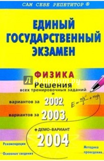 Единый государственный экзамен: Физика: Подробный разбор заданий из "Вариантов 2001", "Вариантов 2002", "Демо-варианта 2003" и Тренировочных заданий: Методика проведения: Основные сведения. В дополнение заданий приводится правила и методика проведения ЕГЭ, общие рекомендации, советы для проверки ответов, которые при правильном использовании будут способствовать улучшению отметки.