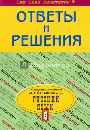Выполненные упражнения и задания из учебника "Русский язык. 6 класс" авторов М. Т. Баранова и др. Данное пособие содержит подробный разбор абсолютно всех упражнений из нового учебника по русскому языку. Настоящее издание может быть использовано при работе с любыми другими предыдущими изданиями учебника.