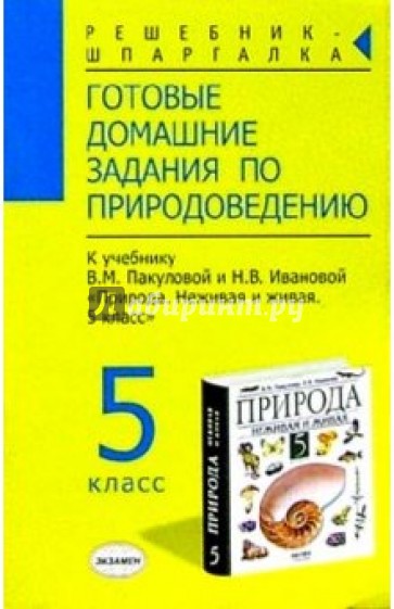 Пособие содержит подробные ответы на все вопросы и выполненные задания из учебника "Природа. Неживая и живая: Учебник для 5 класса общеобразовательных учебных заведений/ В.М. Пакулова, Н.В. Иванова. - 5-е изд., стереотип. - М.: Дрофа, 2002.".