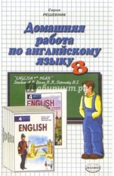 Предлагаемое учебное пособие содержит образцы выполнения всех заданий и упражнений из рабочей тетради, книги для чтения и учебника "Английский язык. Учебник для 8 кл. общеобразовательный учебных заведений / А.П. Старков,Р.Р. Диксон, Б.С. Островский. - 4 изд., стереотип. - М.: ООО "Издательство АСТ"; ООО "Издательство Астрель"; Спб.: СпецЛит, 2002 год".
