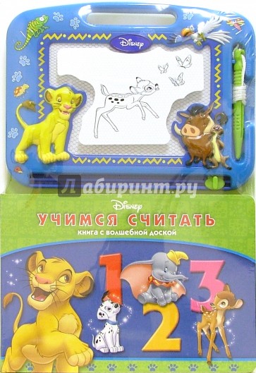Весёлые зверушки из мультфильмов Диснея учатся считать! Присоединяйся к ним! Бемби, Дамбо, Балу, Симба, Тимон и Пумба познакомят тебя с цифрами от 1 до 10. Надписи, нанесённые на волшебную доску магнитным карандашом, легко стираются, поэтому ты сможешь наслаждать этой книгой снова и снова!