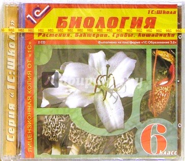 Комплектация изделия: 2 компакт-диска в дабл-кейсе: на одном диске находится дистрибутив образовательного комплекса "1С:Школа. Биология, 6 кл. Растения. Бактерии. Грибы. Лишайники", на другом - система программ "1С: Образование 3.0".