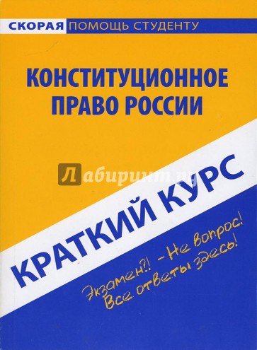 Настоящее издание представляет собой учебное пособие, подготовленное в соответствии с Государственным образовательным стандартом по дисциплине "Конституционное право России". Материал изложен кратко, но четко и доступно, что позволит в короткие сроки его изучить, а также успешно подготовиться и сдать экзамен или зачет по данному предмету.