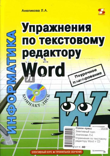 К книге прилагается бесплатный компакт-диск с упражнениями по текстовому редактору.