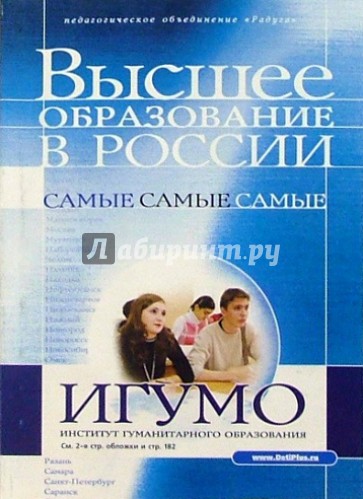 В справочнике собрана информация о государственных и негосударственных высших учебных заведениях крупнейших городов России: адрес и телефон вуза; факультеты, специальности, направления; приемные экзамены, конкурс; продолжительность обучения; выдаваемый диплом; наличие бесплатной и платной форм обучения; другая информация. Сведения были предоставлены руководителями вузов.