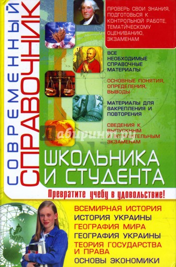 Запомните: "Современный справочник школьника и студента" - издание, которое содержит сведения по истории, географии, теории государства и права, основам экономики.