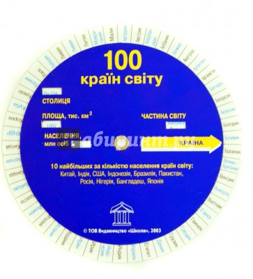 Вашему вниманию представлены 100 стран мира, их площадь, столицы, население и в какой части света они находятся. На украинском языке.