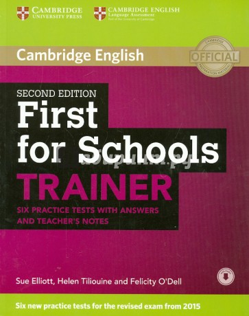 Six full practice tests with tips and training for the 2015 revised Cambridge English: First (FCE) for Schools. First for Schools Trainer offers six practice tests for the revised Cambridge English: First (FCE) for Schools exam combined with easy-to-follow guidance and exam tips. The first two tests are fully guided with advice on how to tackle each paper. Extra practice activities, informed by the Cambridge Learner Corpus, a bank of real candidates' exam papers, focus on areas where students typically need most help. This edition contains teachers notes and a full answer key. Audio for the listening and speaking test activities is available online for download. Audio CDs featuring the listening material are also available, separately.