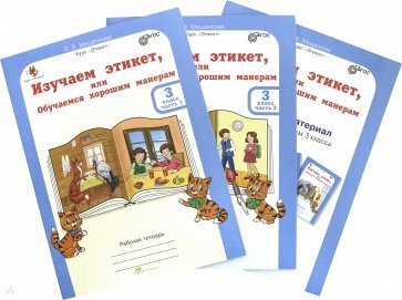 Изучаем этикет 3кл. Комплект Р/т в 2-х ч./Курс "Этикет" Изучаем этикет, или Обучаемся хорошим манерам. 3 кл. Р/т в 2-х ч.+ цветной разрезной материал и наклейки. Термоупаковка.