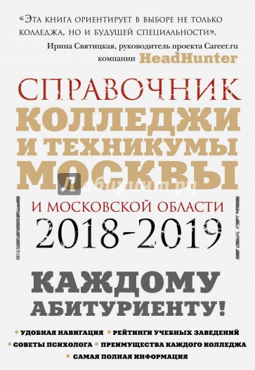 Книга, которую вы держите в руках - это настоящий навигатор в мире образования, она предназначена для выпускников 9-11 классов, а также их заботливых родителей. Данный справочник поможет старшеклассникам легко сориентироваться в мире специальностей и найти свое место в мире профессионалов. Удобный и четко структурированный справочник содержит наиболее полную информацию об около 226 средних специальных заведениях Москвы и Московской области (колледжах и техникумах): о формах и сроках обучения, подготовительных курсах и возможности продолжить обучение по выбранной специальности в вузе. Вы узнаете не только о наличии бюджетных мест и общежитий, но и о том, где созданы лучшие условия для занятий, питания и проживания студентов, а также о клубах по интересам, культурной и спортивной жизни техникума, училища или колледжа. В справочнике вы найдете примерные программы вступительных испытаний, рейтинги топа 54 учебных заведений, а также топ 50 профессий и стратегий по их выбору. Выбирайте для себя оптимальный вариант, рассчитывайте на свои силы! Данный справочник, подобно незаменимому навигатору на, быть может, самом важном этапе жизни человека поможет вам не только получить представление обо всех средних специальных заведениях Москвы и области, но и подготовиться к решающему шагу в выборе своего будущего. Издание снабжено психологическими тестами, помогающими юным определиться с этим выбором. Эта книга - лучшее, что может быть на пути к успеху в современном мире.