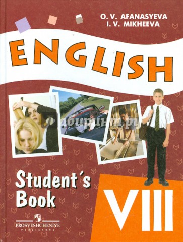 В учебник включены задания для повторения материала, пройденного в VII классе. Основной курс для VIII класса состоит из 6 тем (Units): Choosing a Career: The World of Jobs; Education: The World of Learning; Shopping: The World of Money; Fascination and Challenge: The World of Science and Technology; Going to Places: The World of Travelling; Newspapers and Television: The World of Mass Media. Задания учебника направлены на тренировку учащихся во всех видах речевой деятельности (аудировании, говорении, чтении и письме).
