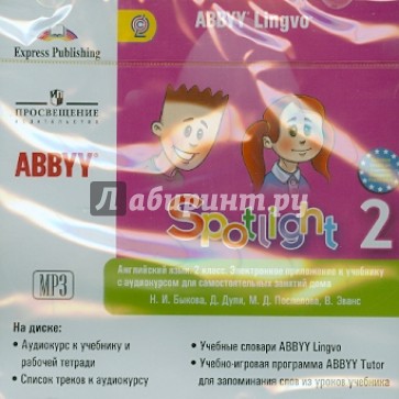 Диск представляет собой электронное приложение к учебнику серии "Английский в фокусе" {"Spotlight") для 2 класса общеобразовательных организаций авторов Н. И. Быковой, Д. Дули, М. Д. Поспеловой и др.