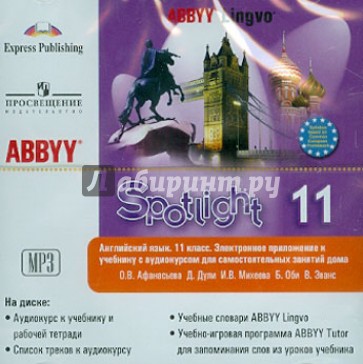 Диск представляет собой электронное приложение к учебнику серии "Английский в фокусе" ("Spotlight") для 11 класса общеобразовательных учреждений авторов О.В. Афанасьевой, Д. Дули, И.В, Михеевой и др.