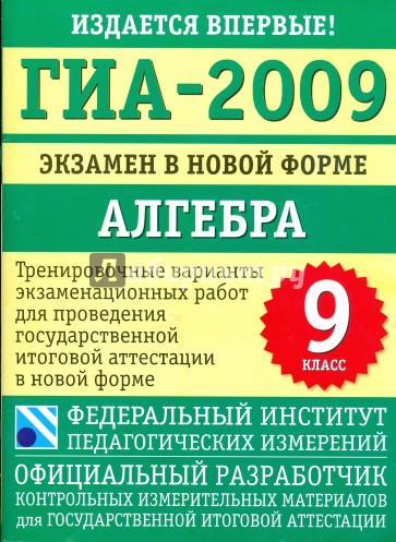 ГИА-2009: экзамен в новой форме: алгебра: 9-й класс: тренировочные варианты экзаменационных работ для проведения государственной итоговой аттестации в новой форме.