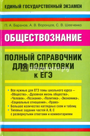 В справочнике, адресованном выпускникам и абитуриентам, в полном объеме дан материал курса "Обществознание", который проверяется на едином государственном экзамене. Структура книги соответствует кодификатору элементов содержания по предмету, на основе которого составлены экзаменационные задания - контрольно-измерительные материалы ЕГЭ. В справочнике представлены следующие разделы курса: "Общество", "Духовная жизнь общества", "Человек", "Познание", "Политика", "Экономика", "Социальные отношения", "Право". Краткая и наглядная - в виде схем и таблиц - форма изложения обеспечивает максимальную эффективность подготовки к экзамену. Образцы заданий и ответы к ним, завершающие каждую тему, помогут объективно оценить уровень знаний.