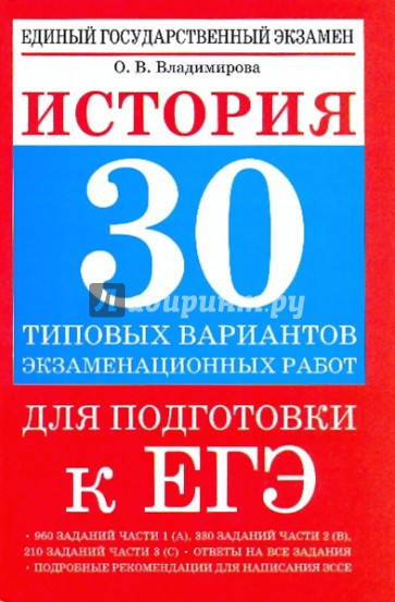 Вниманию школьников и абитуриентов впервые предлагается учебное пособие для подготовки к ЕГЭ, которое содержит 30 вариантов типовых экзаменационных работ.