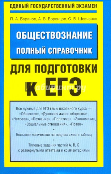 В справочнике, адресованном выпускникам и абитуриентам, в полном объеме дан материал курса "Обществознание", который проверяется на едином государственном экзамене.