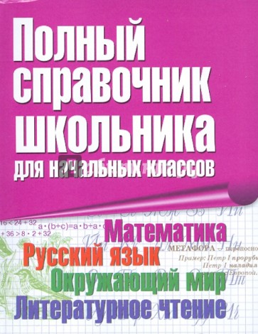 Справочник дает обширный материал по русскому языку, математике, литературному чтению и окружающему миру. Он поможет осмыслить и усвоить теоретический материал, а также научит применять на практике орфографические и пунктуационные правила, решать любые математические задачи, примеры и уравнения.