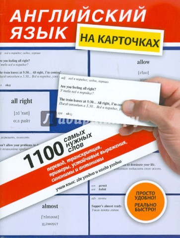 Пособие включает 1100 наиболее употребительных английских слов на двусторонних карточках. На лицевой стороне карточки содержится английское слово, фонетическая транскрипция, записанная с помощью стандартных символов Международной фонетической ассоциации, а также русифицированную транскрипция. На обратной стороне карточки - определение слова (к какой части речи оно относится), его русский эквивалент, а также примеры с параллельным переводом. Если слово многозначно, приводятся синонимы и антонимы; даются формы неправильных глаголов и образованные не по правилам формы множественного числа существительных. Аутентичные примеры взяты из словаря LONGMAN Dictionary of Contemporary English. Пособие предназначено для всех изучающих английский язык - как для начинающих, так и для тех, кто хочет повысить свой уровень знания английской лексики.