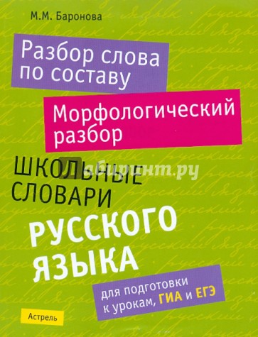 Словарь "Морфологический разбор" включает случаи, наиболее трудные для школьников, что поможет учащимся выполнить по аналогии разбор слов, не включённых в справочник.