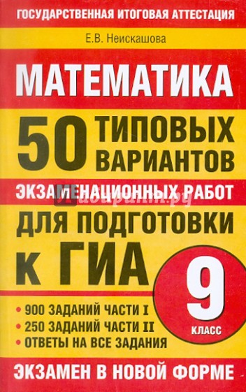 Данное пособие содержит 50 вариантов типовых экзаменационных работ. Каждый вариант составлен в полном соответствии с требованиями государственной итоговой аттестации и включает задания разных типов и уровня сложности по всем основным темам, которые выносятся на экзамен: числа, буквенные выражения, преобразования алгебраических выражений, уравнения, неравенства, последовательности и прогрессии, функции и графики. Значительный по объему банк экзаменационных материалов предоставляет отличную возможность для интенсивной тренировки и овладения необходимыми для успешной сдачи экзамена умениями и навыками. В конце книги даны ответы для самопроверки на все задания.