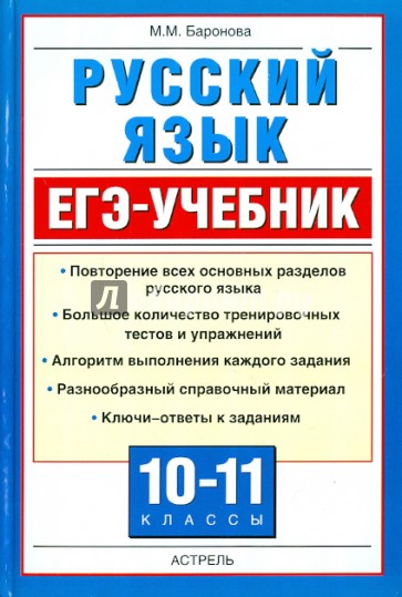 ЕГЭ-УЧЕБНИК по русскому языку - уникальное пособие для учащихся 10 - 11 классов и абитуриентов, позволяющее в кратчайшие сроки и без привлечения других пособий успешно подготовиться к сдаче единого государственного экзамена.