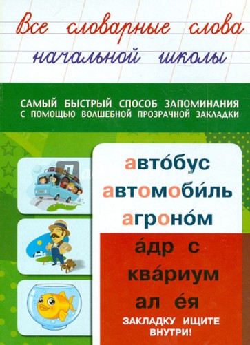 Если приложить волшебную закладку к словам, то орфограммы исчезнут. С помощью этой закладки ты сможешь выучить все словарные слова и проверить свои знания. А еще с этой книгой можно поиграть.
