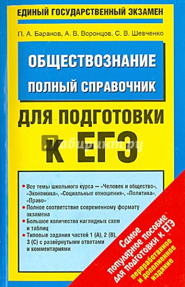 В справочнике, адресованном выпускникам средней школы и абитуриентам, в полном объёме дан материал курса "Обществознание", который проверяется на едином государственном экзамене.