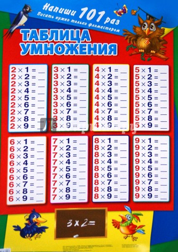 Красочно оформленная таблица умножения. Правильное решение примеров малыш должен написать сам!