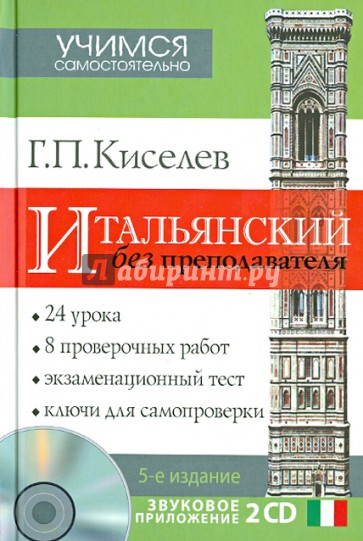 В его основе лежат принципы коммуникативности, способствующие эффективному усвоению итальянской уст ной и письменной речи. Используется в качестве базового пособия при заочном обучении итальянскому языку. Включает 24 урока, 8 проверочных работ, экзаменационный тест, ключи для самопроверки и учебный словарь. Снабжено звуковым приложением.